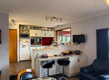 Brick home with an iron roof and aluminum joinery, open plan kitchen which was updated 6 years ago and dining with double sliding doors to outside. Large separate living area with Yucca multi fuel, three bedrooms with internal wardrobes, main bedroom internal access to main bathroom with toilet, shower and bath, there is also a separate laundry, toilet and office area. Extra heating including night store heater and wall panel heaters. In built wood and coal bins included in the attached double bay garage. Two tunnel houses, sheltered established setting.