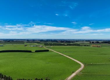 Covered yards and woolshed for calf rearing. Holding paddocks flow to west. Six bay and three bay implement sheds. Separate woolshed and covered yards located near Argyle Otahuti Road end of farm.
