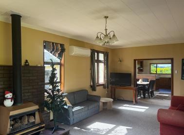 Four bedroom homestead with roughcast, tiled roof and part double glazed. Open plan living and dining, Main bathroom includes toilet, bath and shower. Separate toilet in laundry. Single car garage. Surrounded by mature plantings providing comfortable family living.