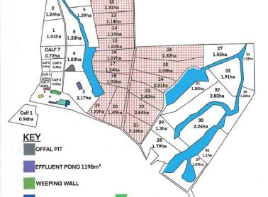 There is a weeping wall for the calving barn/concrete feed pad which is consented for 100 cows until 2031.
