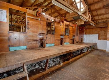 Four stand raised board woolshed (1700 woolies), workshop and storage shed.