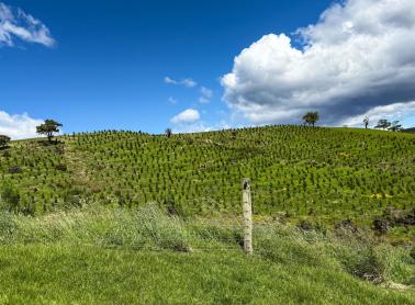 26ha of QEII, 10ha of first year crop kale, 10ha young grass and 49ha of 1 - 3 year old pine trees.