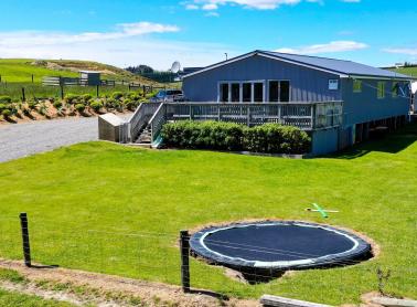 180sqm main home with five bedrooms. Modern and well designed internally with open plan kitchen, dining and living. One bathroom with shower, bath and vanity and a separate toilet. There is a wall heater in main living area and a heatpump in the bedroom areas. The house is double glazed. Colorsteel roof and laundry at entry. Situated near house is a shed.